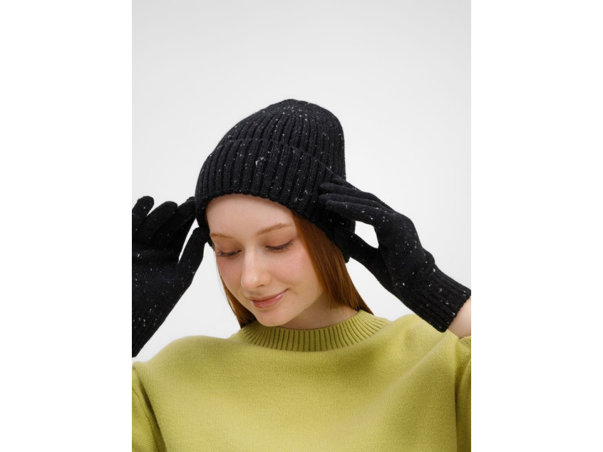 Комплект из шапки-бини и сенсорных перчаток Spotti сочетает современный дизайн с практичностью.