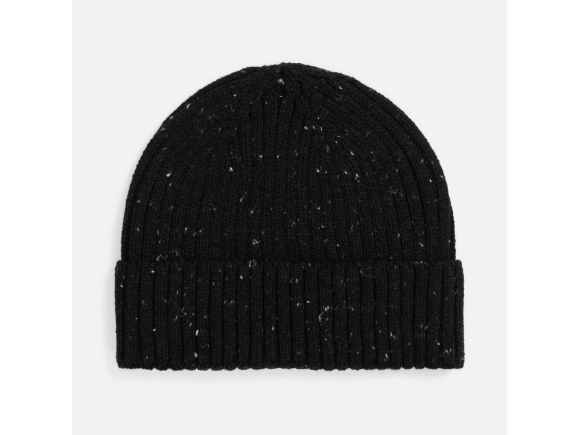 Шапка с отворотом, связанная объемной резинкой из мягкой акриловой пряжи, создает стильный силуэт и надежно защищает от холода. Особую индивидуальность ей придают контрастные вкрапления в пряже — деталь, которая делает каждое изделие уникальным.