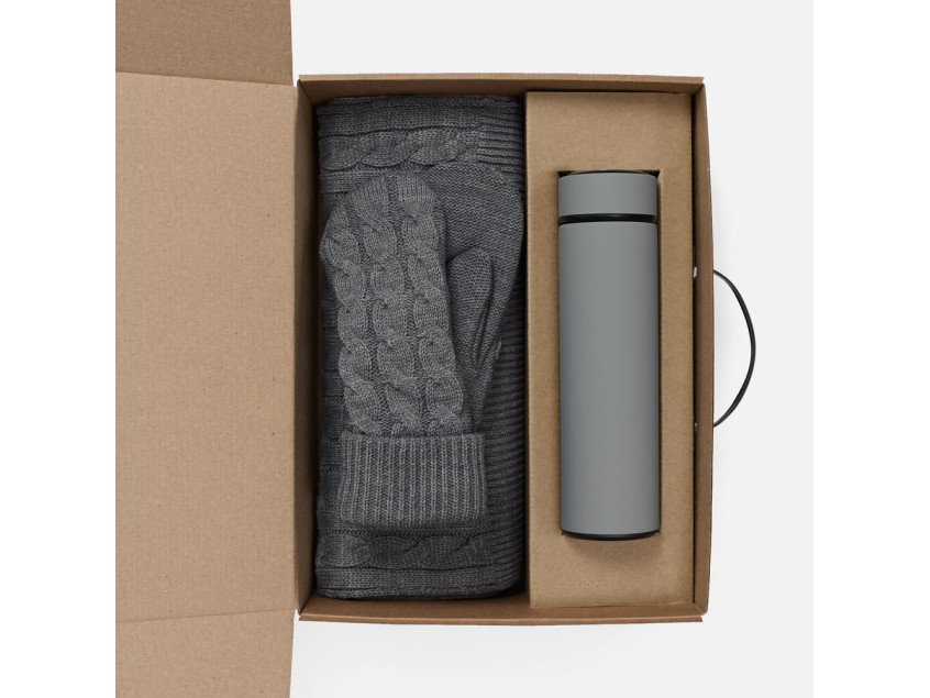 Материал: | шарф, варежки - акрил 100%; термос - нержавеющая сталь, 304; покрытие софт-тач; коробка - микрогофрокартон |