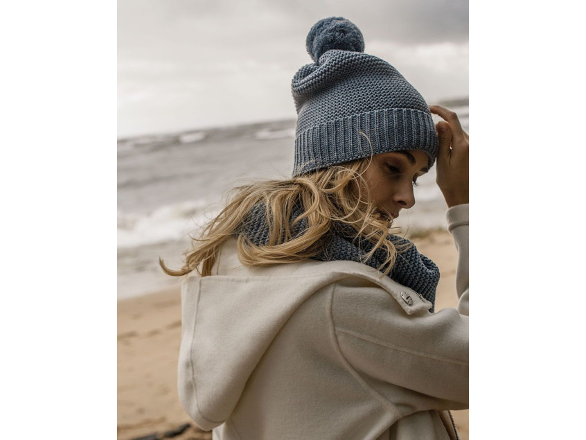 Модель: однотонная шапка с отворотом, помпоном.