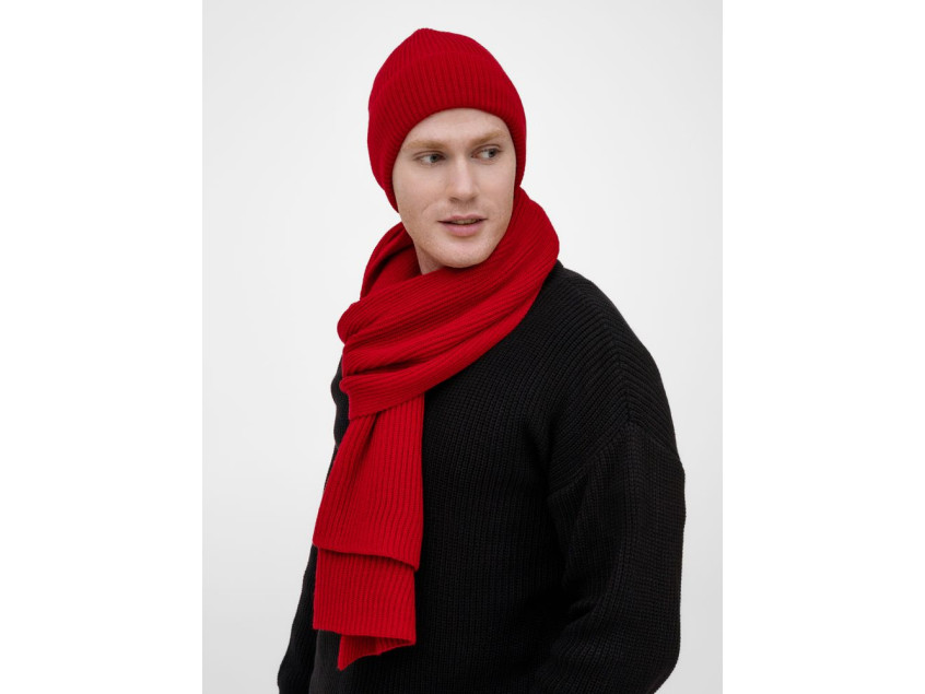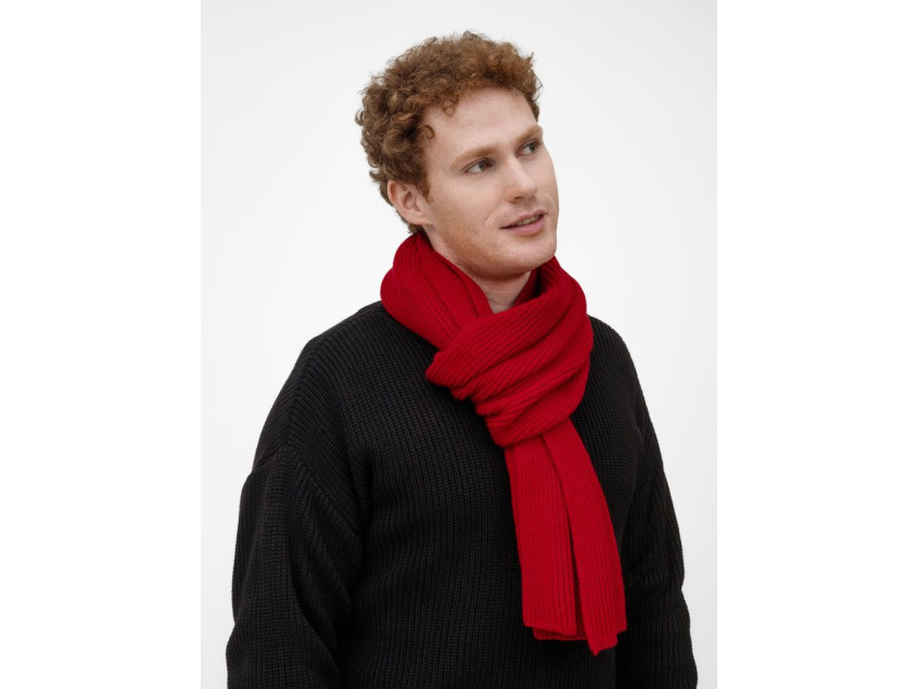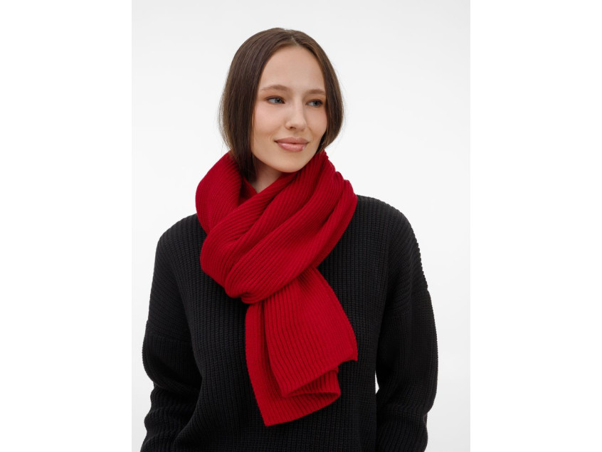 Широкий шарф из мягкой полушерстяной пряжи с выразительной фактурной вязкой создает современный запоминающийся образ.