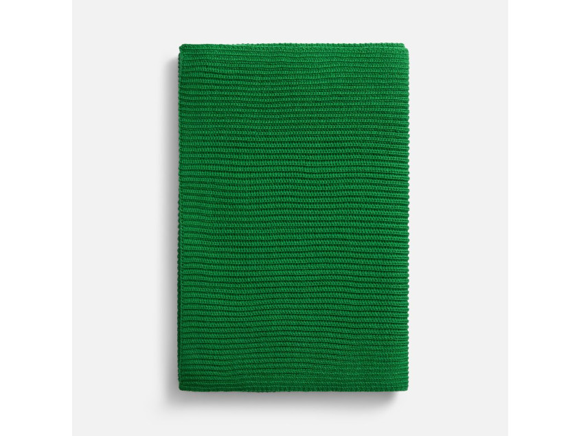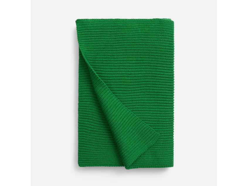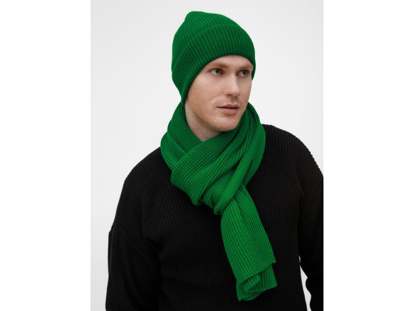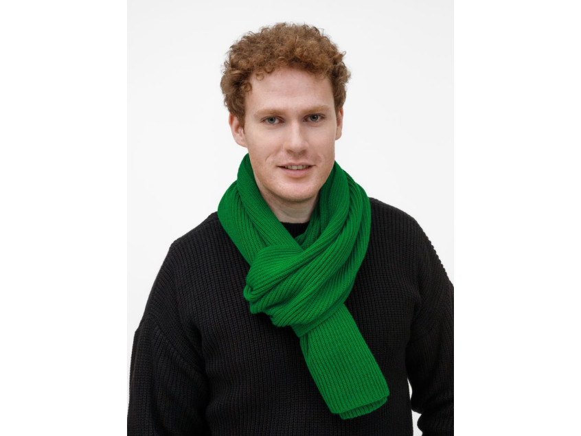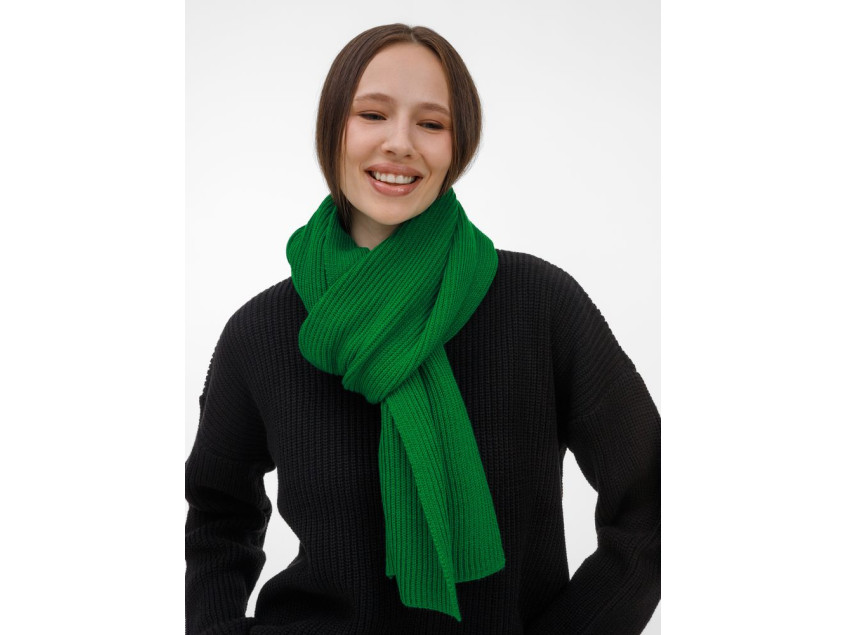 Широкий шарф из мягкой полушерстяной пряжи с выразительной фактурной вязкой создает современный запоминающийся образ.