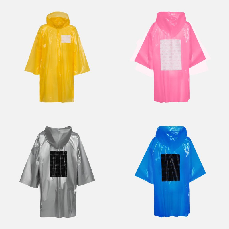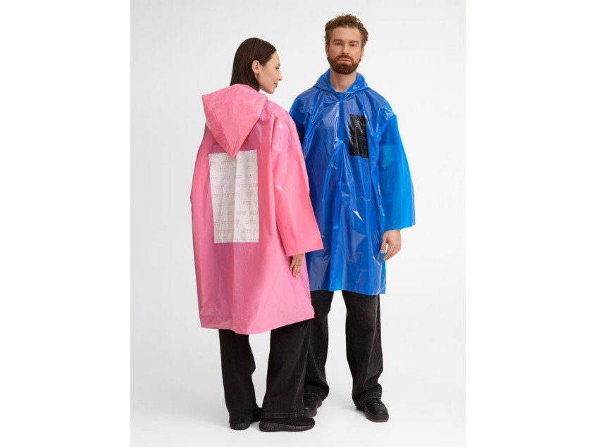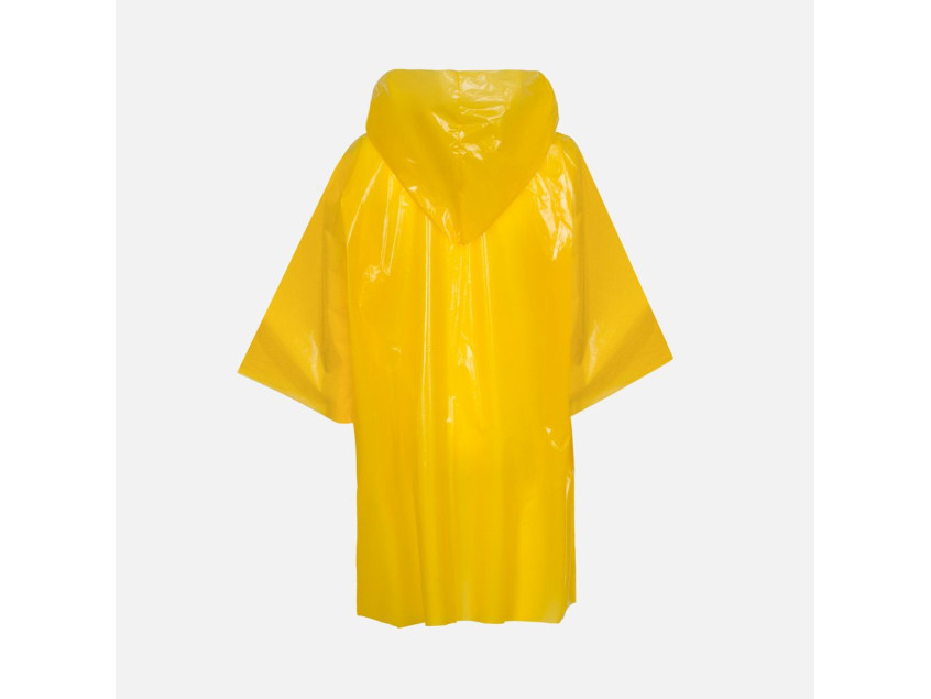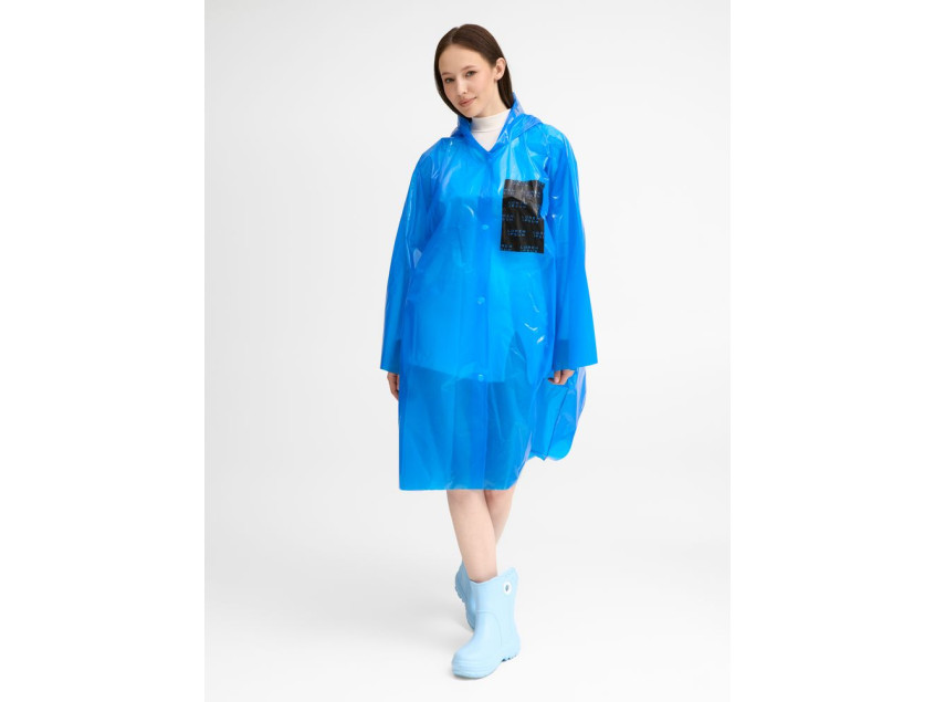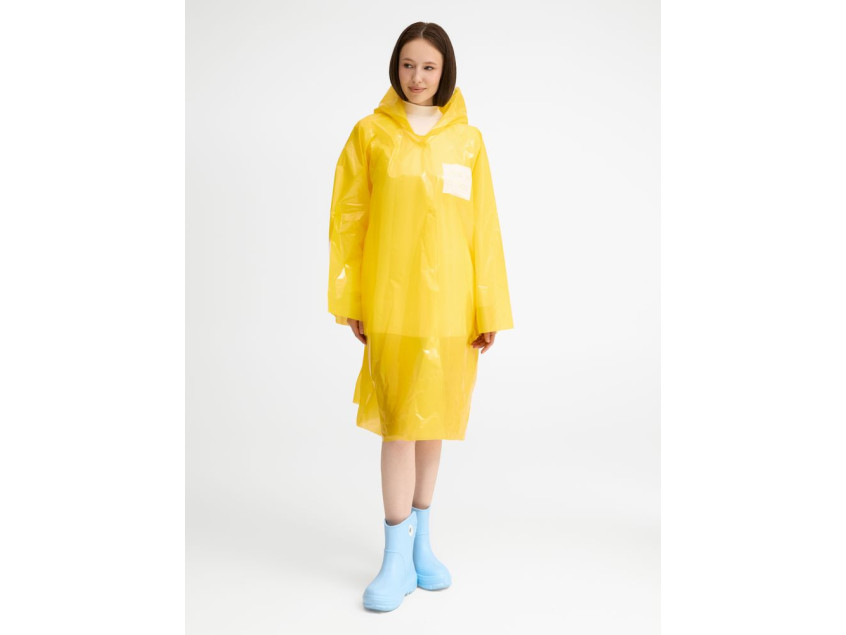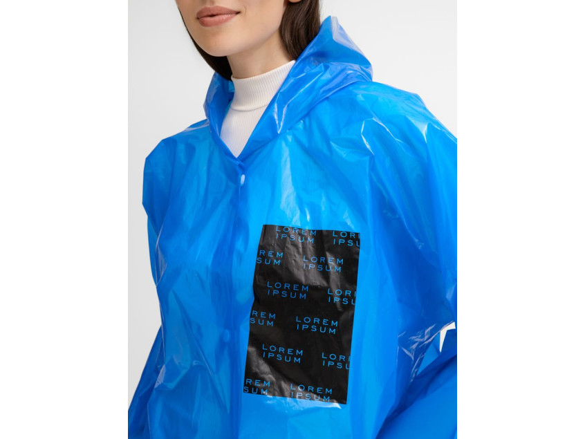 Интересный цвет и печать в один цвет на самом изделии позволят создать не только запоминающийся дизайн, но и отличный маркетинговый инструмент привлечения внимания покупателей.Дождевик-плащ с капюшоном и длинными рукавами из полиэтилена высокого давления (ПВД).