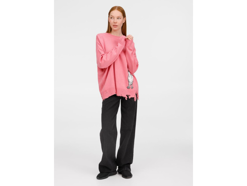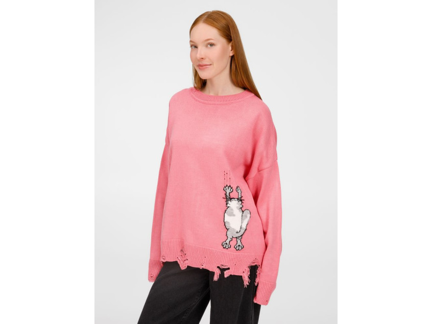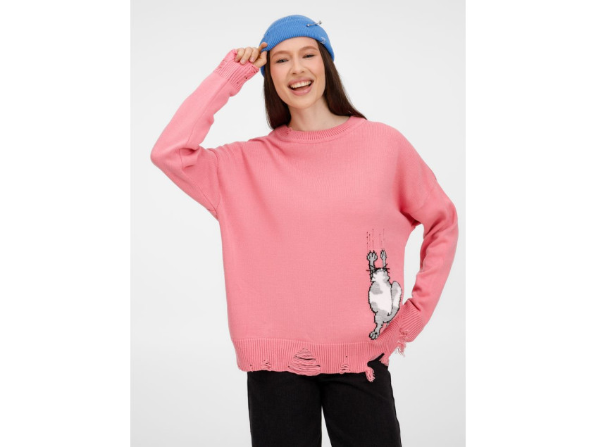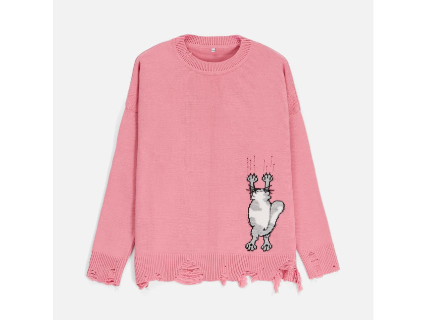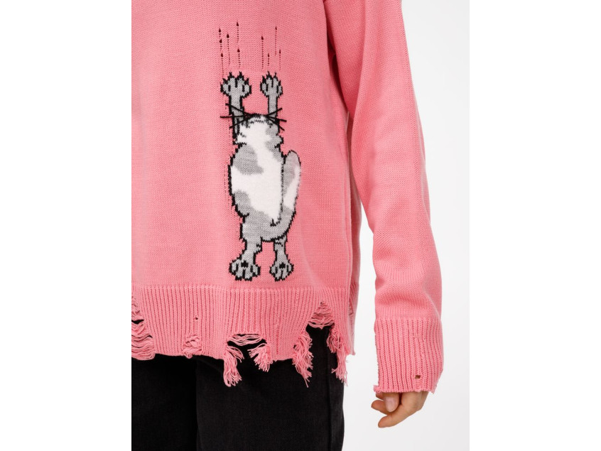 Мягкий джемпер с круглым вырезом и милым пушистым рисунком в виде котика создает настроение легкой несерьезности. Рваные края изделия добавляют современную нотку, а резинка на вороте, манжетах и по низу обеспечивает удобную посадку. Джемпер Sharpick — идеальный выбор для тех, кто ценит комфорт и хочет разнообразить свой гардероб.