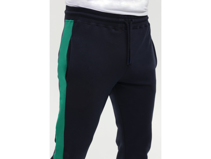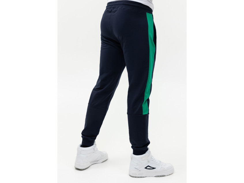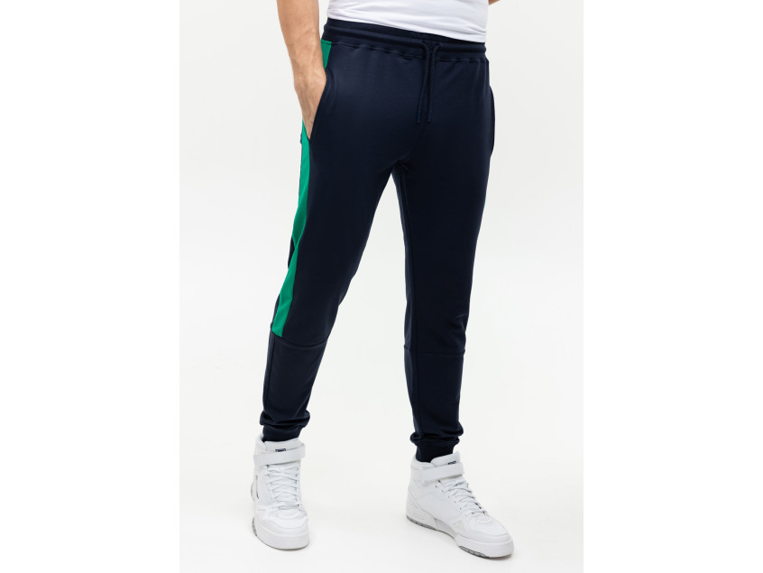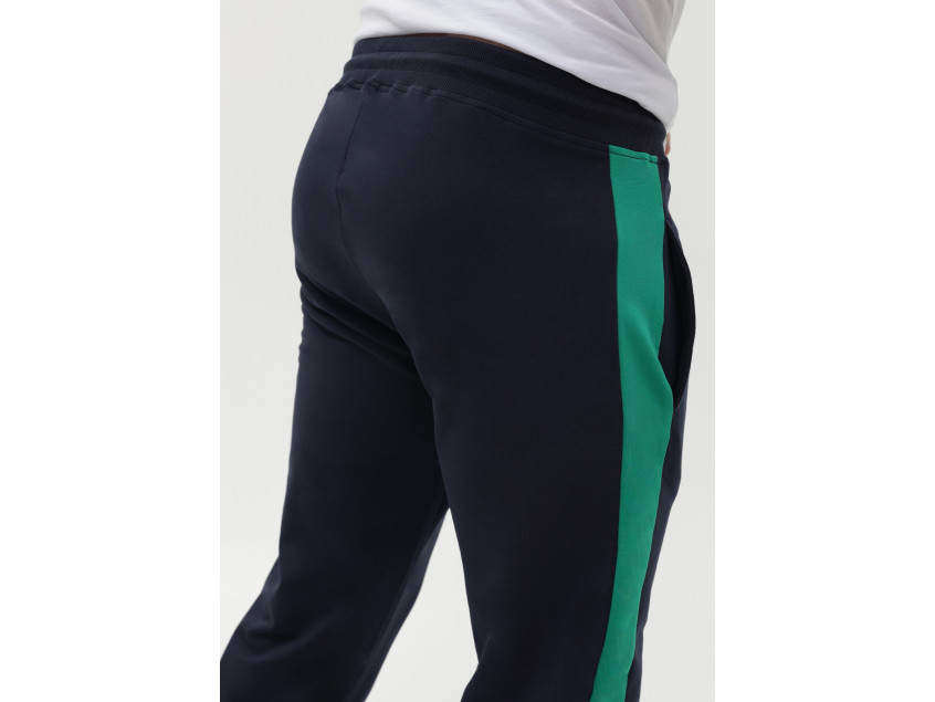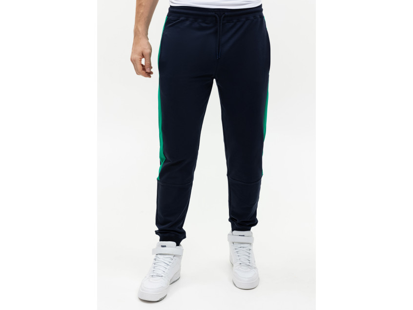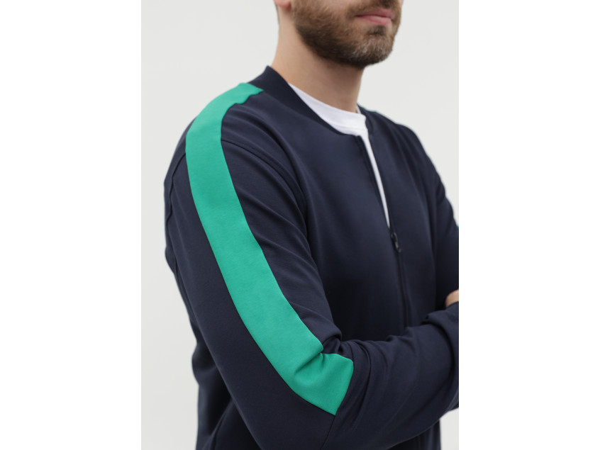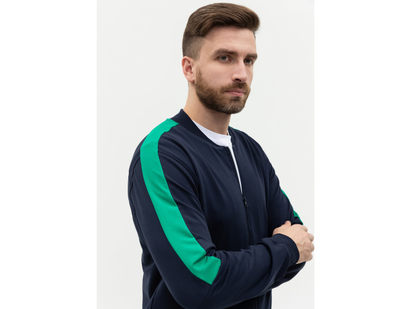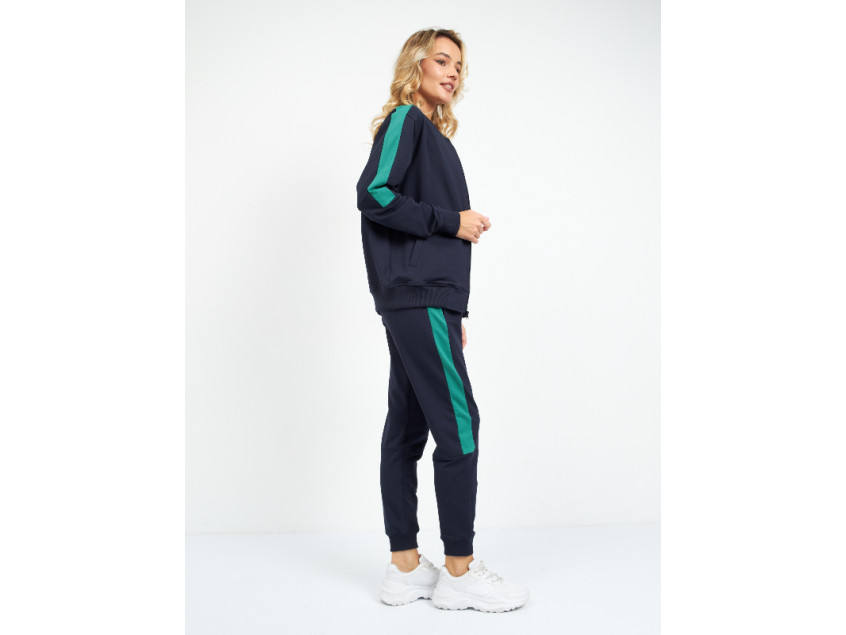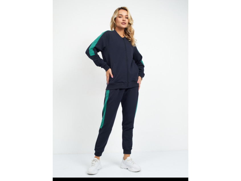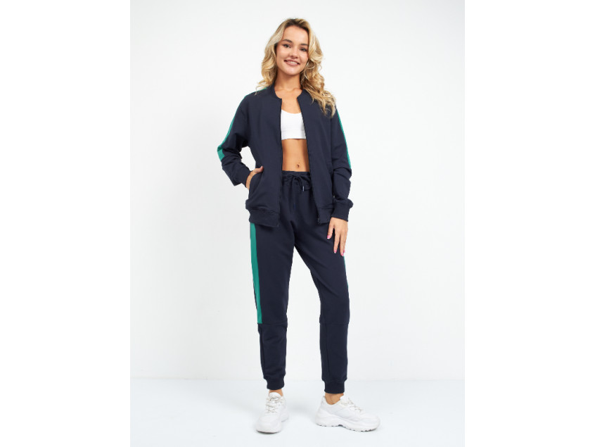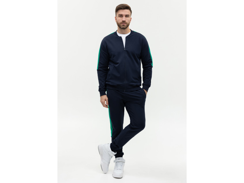 Олимпийка прямого силуэта с воротником-стойкой, втачным рукавом, прорезным карманом и застежкой на молнию. Манжет и пояс изделия оформлены широкой эластичной резинкой для дополнительной защиты от ветра и сохранения тепла. Брюки прямого кроя с глубоким прорезным карманом и эластичным поясом. Манжет на брюках оформлен широкой эластичной резинкой для более плотного прилегания. Крой дополнен динамичными контрастными вставками на рукаве и брюках.