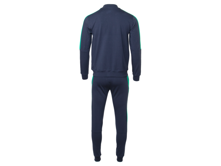 Костюм выполнен из мягкого и плотного материала – футер (78% хлопок, 17% полиэстер, 5% эластан). Ткань хорошо пропускает воздух и впитывает влагу. Благодаря добавлению прочных волокон полиэстера и гибкого эластана изделие отлично тянется, практически не мнется и не скатывается.