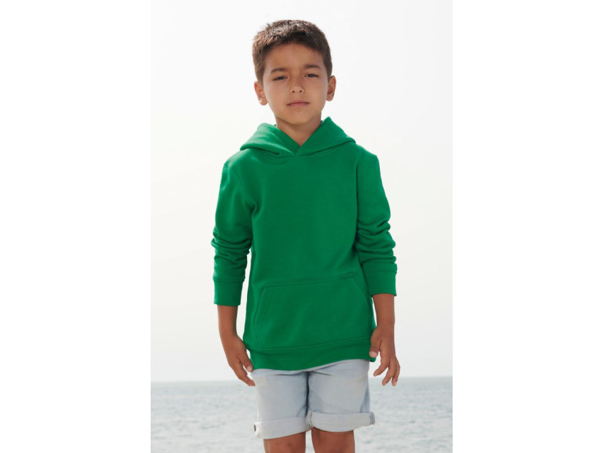 Детское худи из хлопка и переработанного полиэстера с карманом-кенгуру.