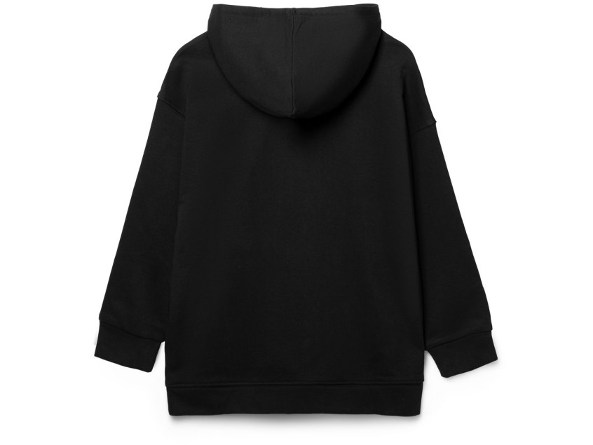 Детское худи оверсайз со спущенным плечом и карманом-кенгуру.