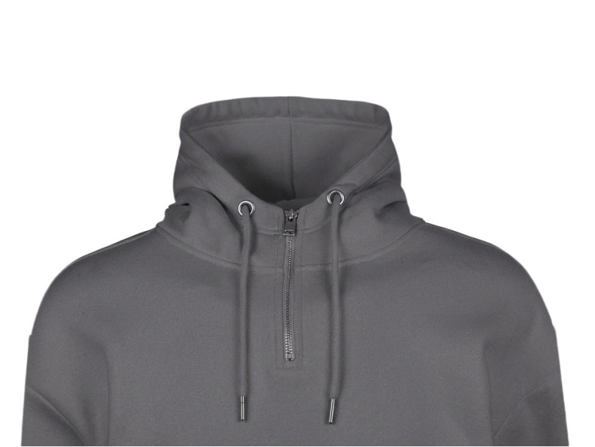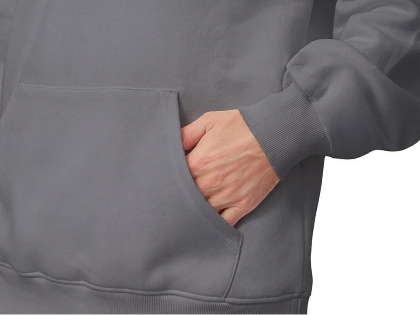 Худи с капюшоном ворот на молнии. Шнур в капюшоне с металлическими наконечниками. Отделка горловины спинки внутри тесьмой, Риб 2х2 по низу изделия и манжетам. Удобный карман кенгуру.