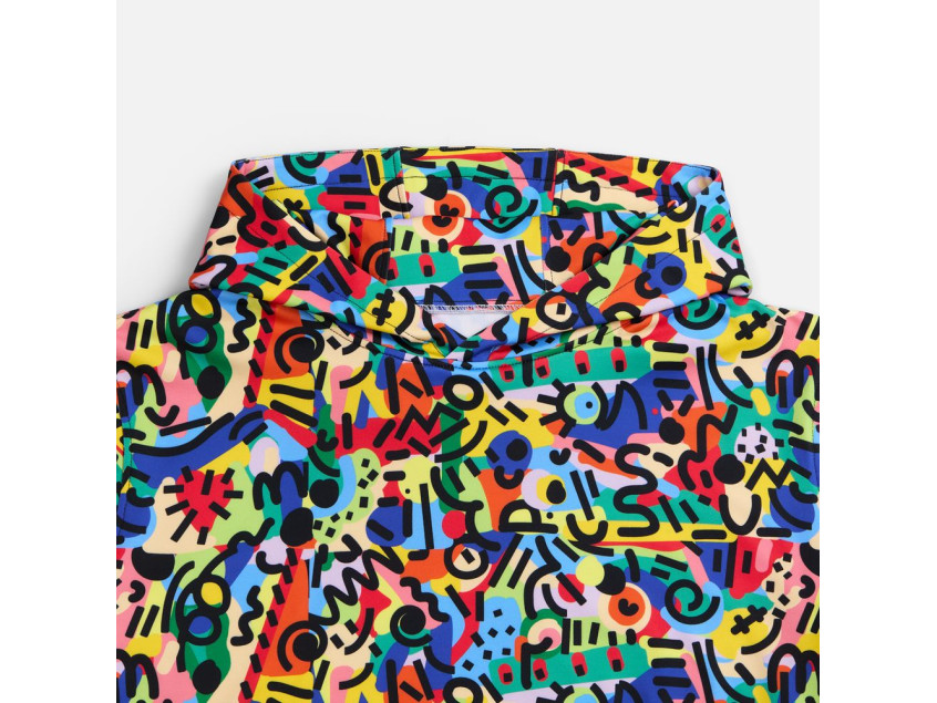 Одежда с печатью рисунка в крое, известной также как all-over или seamless print, предполагает нанесение стойкого полноцветного рисунка (паттерна или узора, не требующего совмещения) на ткань методом сублимации еще до этапа пошива. Такой способ брендирования отличается от печати на готовой одежде и имеет свои уникальные преимущества: