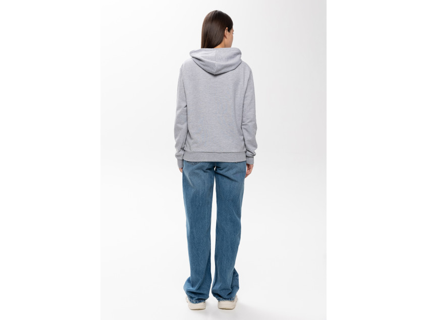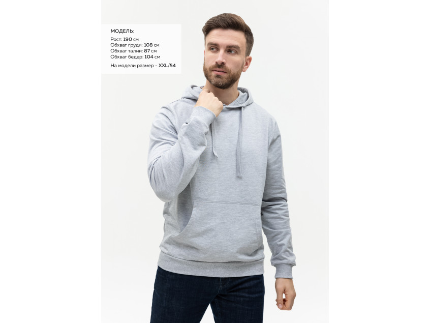 Толстовка прямого силуэта с капюшоном, втачным рукавом и карманом-кенгуру. Капюшон дополнен шнурком для регулирования прилегания, манжет и низ изделия оформлены широкой эластичной резинкой. Возможно два варианта исполнения: контрастные шнурок и бейка/шнурок и бейка в цвет толстовки.