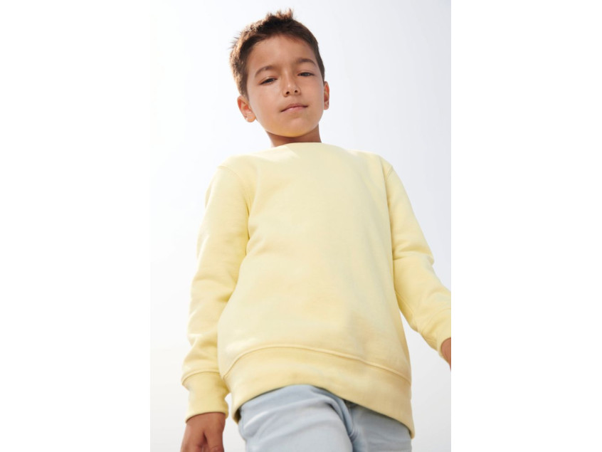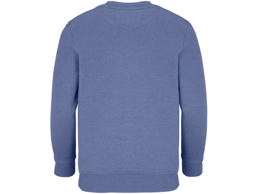 Детский свитшот из хлопка и переработанного полиэстера с круглым вырезом и втачным рукавом.