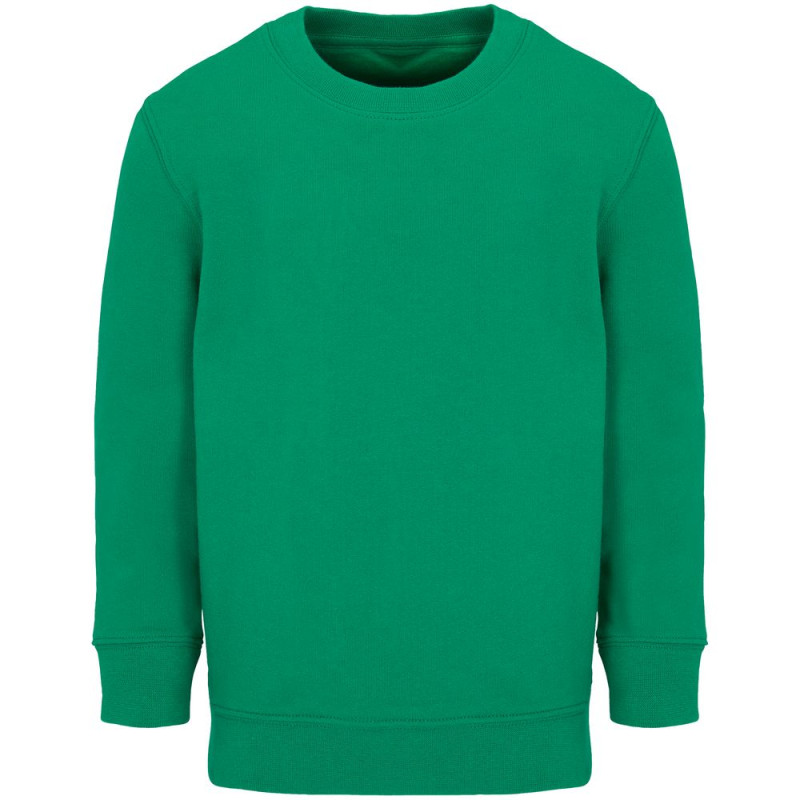 Детский свитшот из хлопка и переработанного полиэстера с круглым вырезом и втачным рукавом.