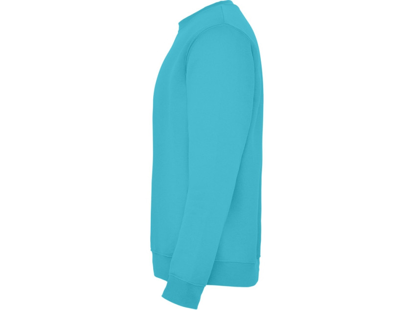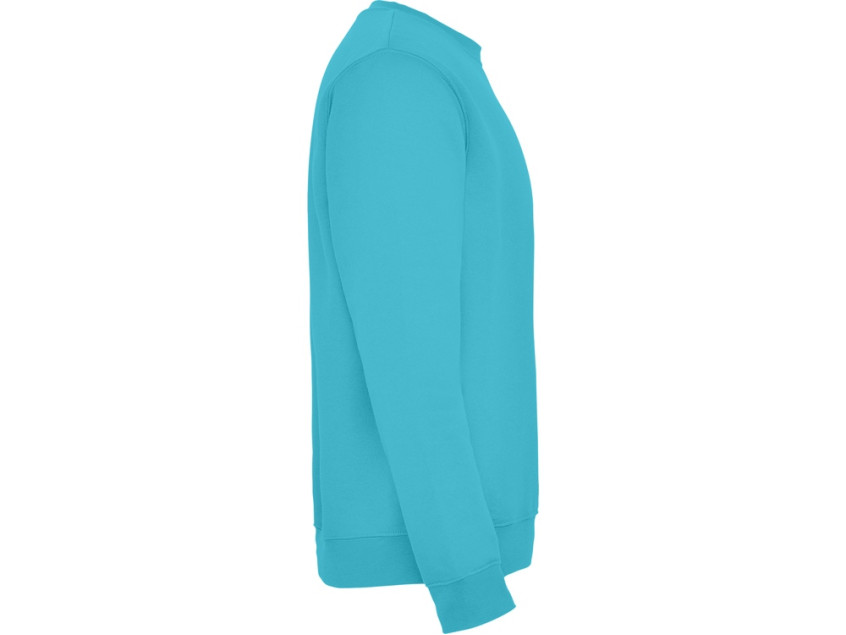 Классическая толстовка свитшот с эластичным рибом 1x1 на воротнике, манжетах и низу изделия. Шов горловины укреплен изнутри тесьмой.