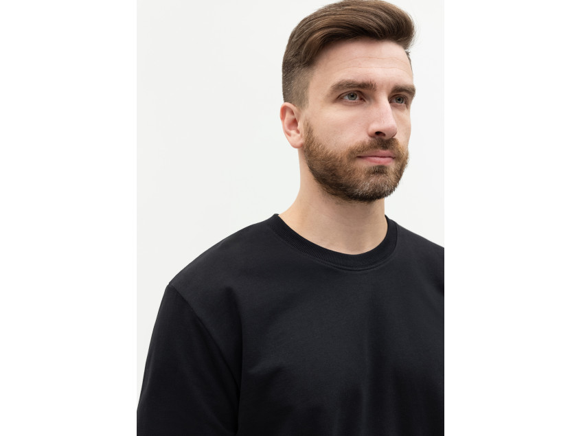 Модель выполнена из плотного хлопкового футера, который хорошо удерживает тепло, обеспечивая комфорт в прохладную погоду. Материал устойчив к механическому воздействию и вытяжению, практически не поддается пилингу.