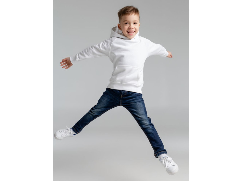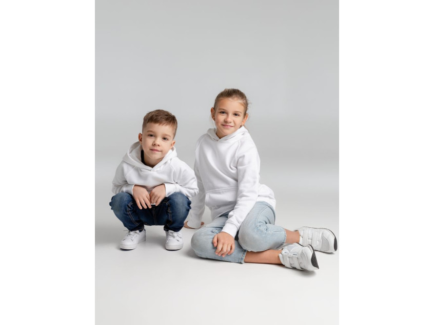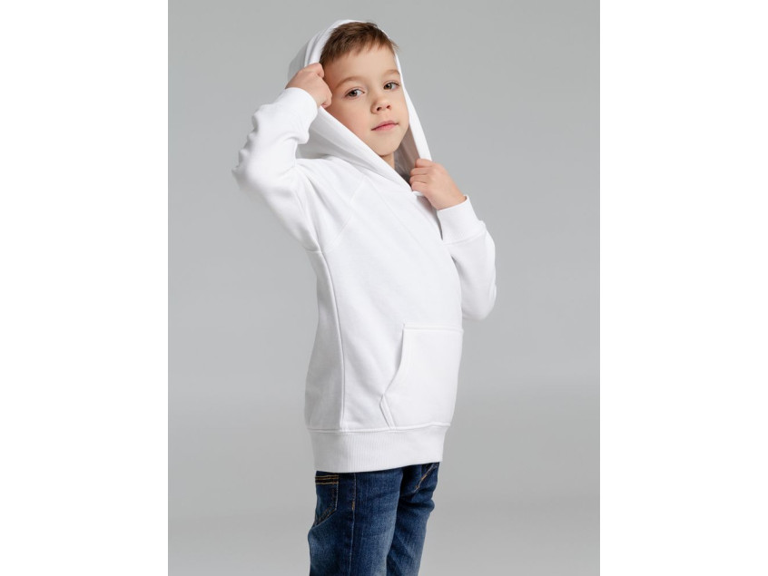 Детская толстовка с капюшоном, рукавами реглан и карманом-кенгуру.