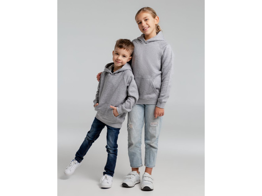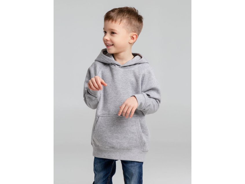 Детская толстовка с капюшоном, рукавами реглан и карманом-кенгуру.