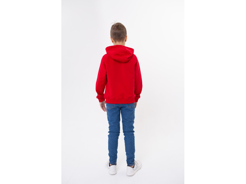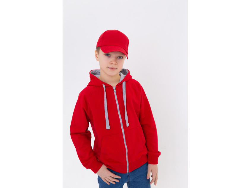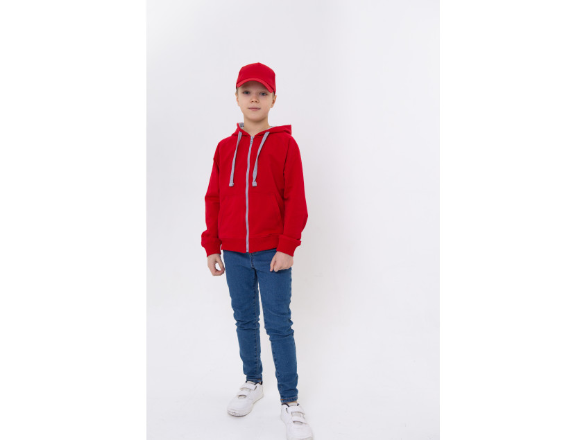 Детская олимпийка свободного силуэта с капюшоном комфортной глубины, рукавом-реглан, накладным карманом и застежкой на контрастную молнию. Капюшон дополнен шнурком для регулирования прилегания, манжет и низ изделия оформлены широкой эластичной резинкой.