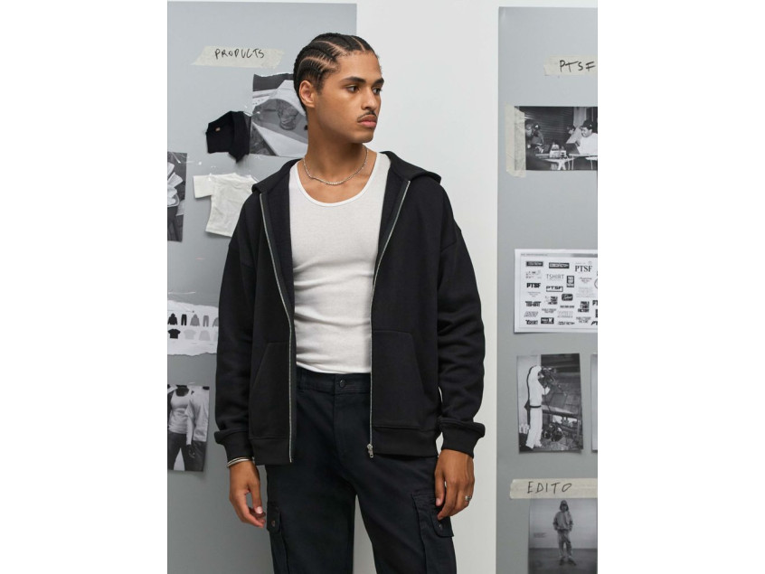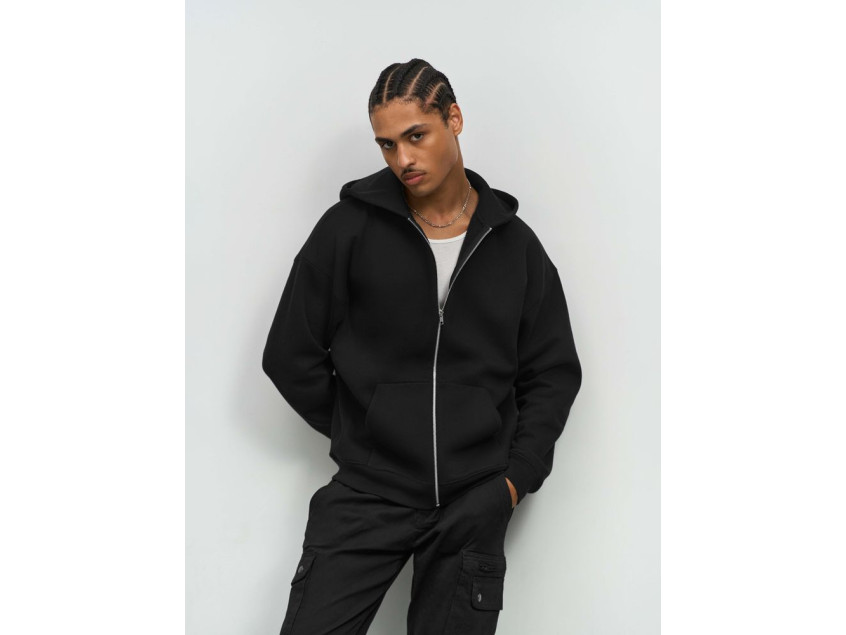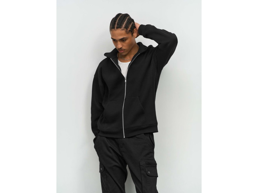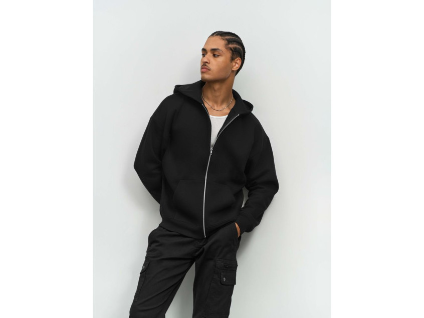 Толстовка на молнии свободной посадки. Благодаря высокой плотности изделие хорошо держит форму, а изнанка с начесом обеспечивает тепло и комфорт.