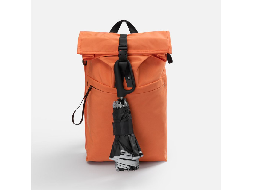 Складываясь после дождя, он прячет мокрую поверхность внутри, а сухая остается снаружи — в закрытом положении зонт не побеспокоит окружающих и не намочит одежду. За ручку-карабин зонт удобно подвесить, например, на рюкзак.