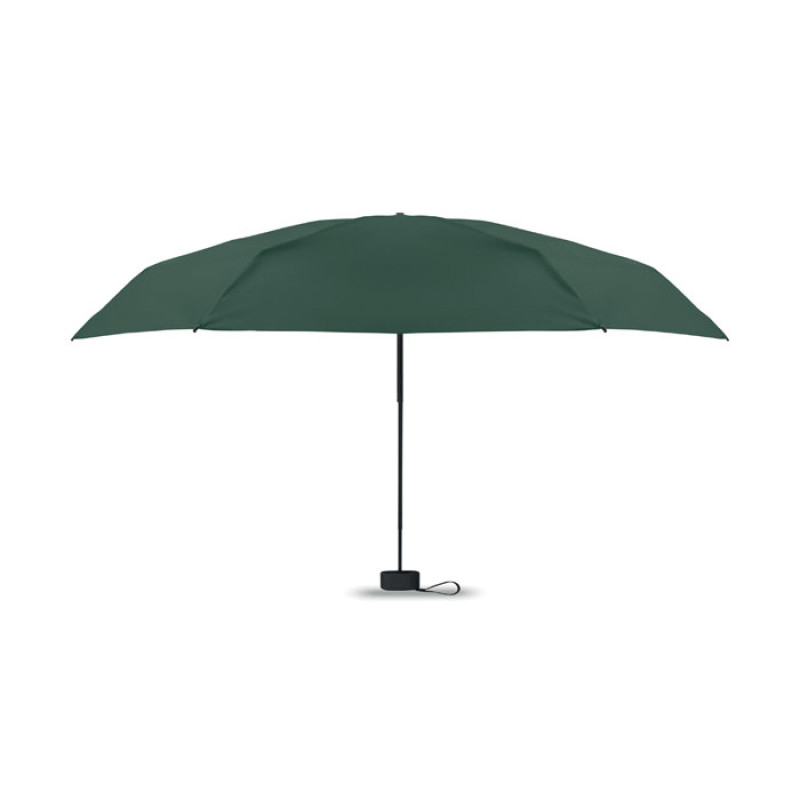 19-дюймовый складной зонт из полиэстера 190T в чехле. Ветроустойчивый каркас из металла и стекловолокна, черная прорезиненная ручка с ремешком на запястье. Компактный размер в сложенном виде 17 см.