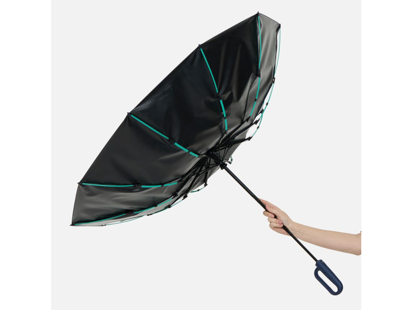 За ручку-карабин удобно подвесить зонт на рюкзак или сумку, покрытие от ультрафиолета защитит в самый солнечный день, а усиленные тройные спицы из стеклопластика выдержат коварные порывы ветра.