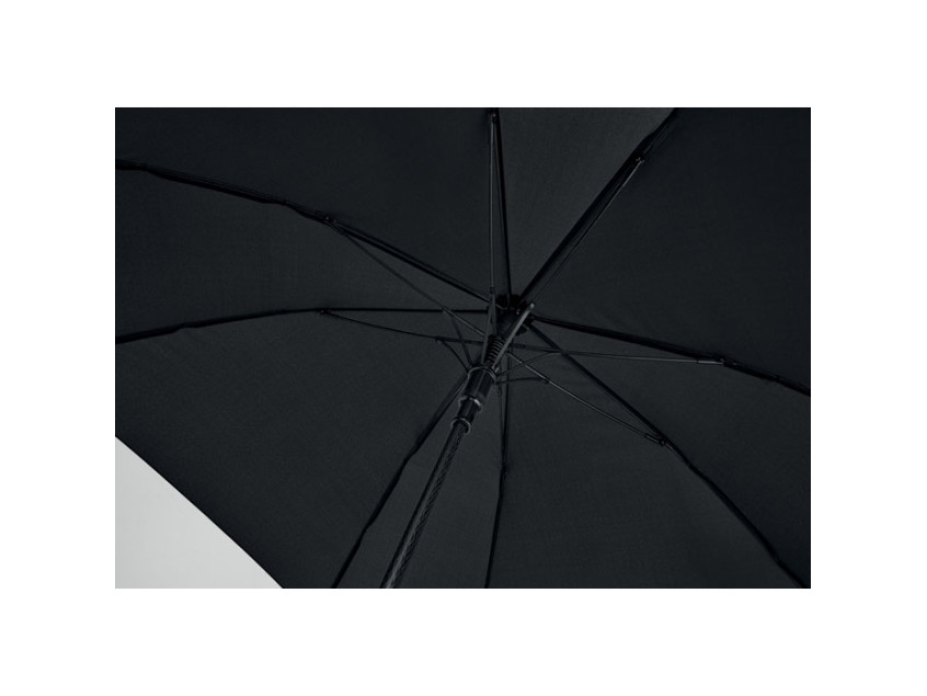 23-дюймовый ветроустойчивый квадратный зонт с автоматическим открыванием из полиэстера 190T. Имеет полностью стекловолоконный каркас и спицы, ручку из пластика с резиновым покрытием.