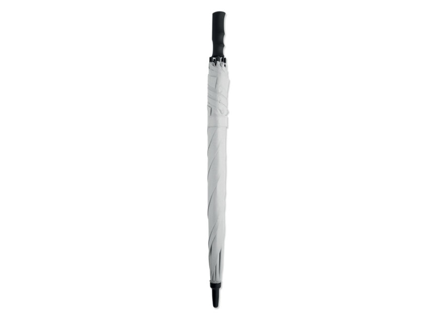 23-дюймовый ветроустойчивый квадратный зонт с автоматическим открыванием из полиэстера 190T. Имеет полностью стекловолоконный каркас и спицы, ручку из пластика с резиновым покрытием.