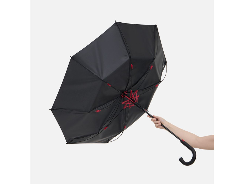 Легкий и невероятно прочный каркас из стеклопластика не боится порывов ветра. Сдержанный дизайн оживляет яркая деталь: цветные акценты на каркасе видны только при раскрытии зонта.