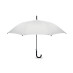 23 inch straight auto open umbrella with black plating metal frame, fibreglass ribs and panels in 190T pongee fabric. Plastic tips and top. Rubberized PP plastic curved handle. Manual closure.